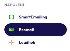 1. Vo vašom účte v aplikácii Děkovačka v ľavom menu nájdete položku Ecomail.